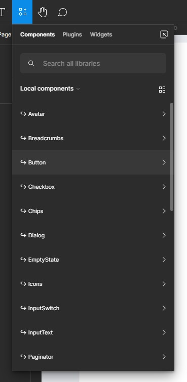1. การเพิ่ม Component สำเร็จรูปต่างๆ ที่มีให้ใช้ใน GISC Design System สามารถทำได้โดยการคลิกที่เมนู Resource จากนั้นภายใต้แท็บ Components ให้เลือก Component ที่คุณต้องการเพิ่มลงไปยัง Frame